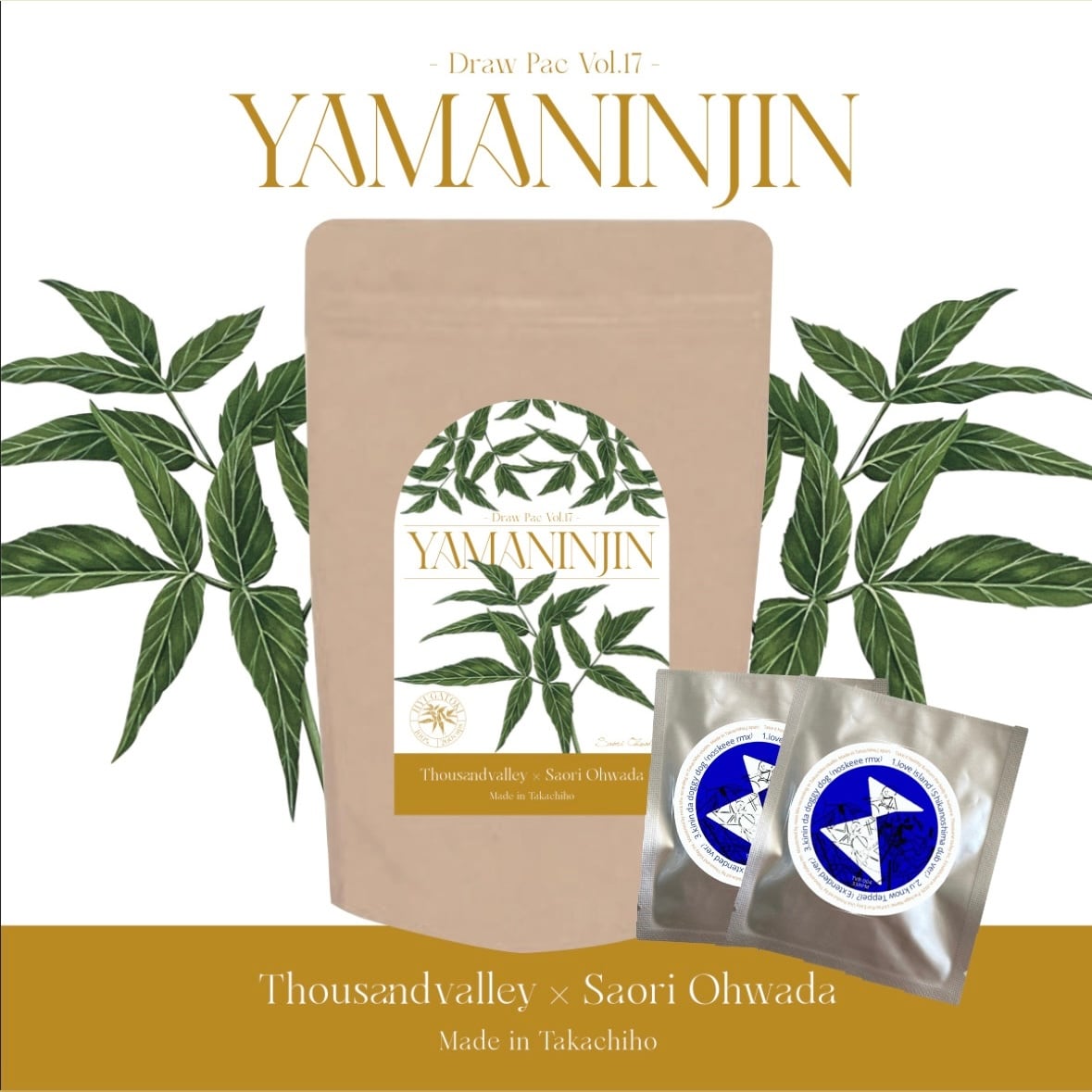 今回、彼女が描き下ろしたのは、高千穂の大地で育まれた「日本山人参」の葉です。